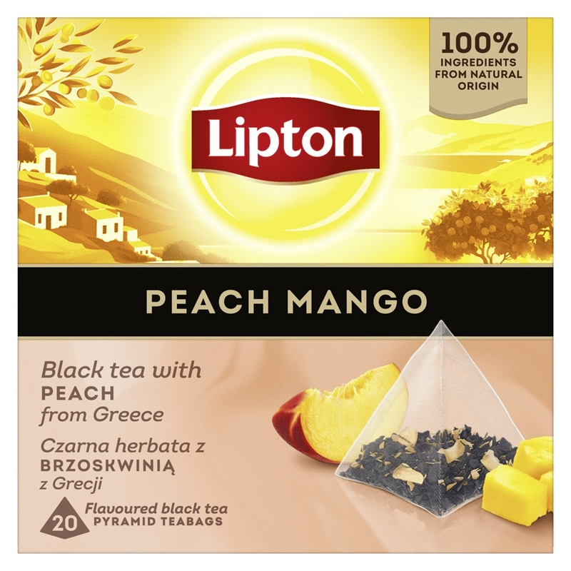 LIPTON Mango si Piersica, ceai, Negru, 20 pliculete piramidale